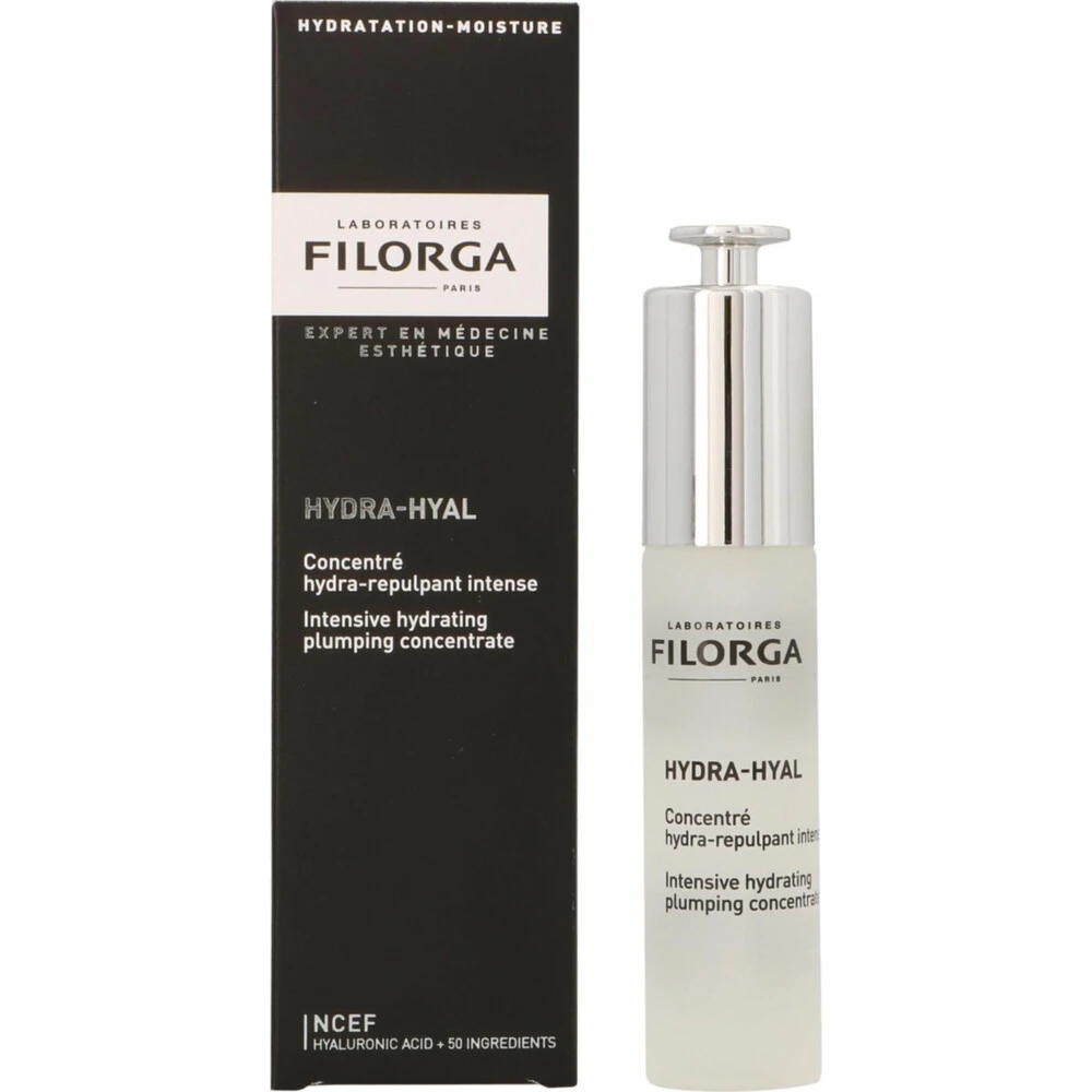 Filorga Serum Hydra-HyalDeze verzorging met hyaluronzuur hydrateert de huid onmiddellijk en doet haar stralen. Na 2 weken zijn uitdrogingsrimpeltjes zichtbaar verminderd.Hydratatie: 4 hyaluronzuren dringen tot in de kern van de huid om haar onmiddellijk te hydrateren, voller en gladder te makenJeugdigheid: 2 plantaardige boosters stimuleren de productie van hyaluronzuur, voor de verjongende werkingStralende huid: NCTF zorgt ervoor dat de huid weer straalt